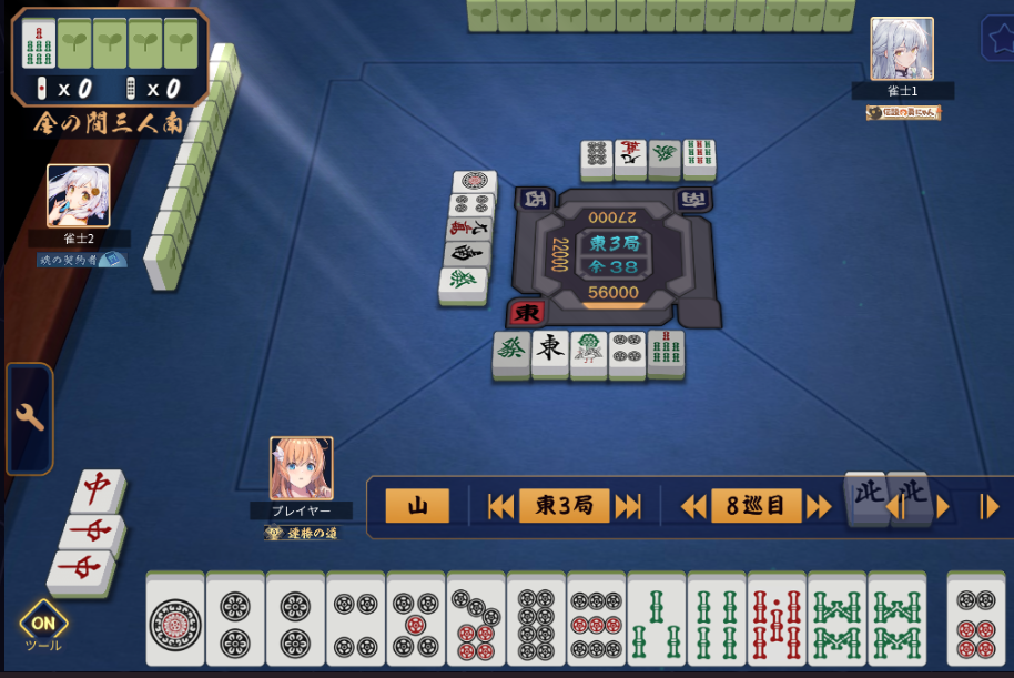 待ち牌枚数 3p 3枚 2p・8s 4枚 |