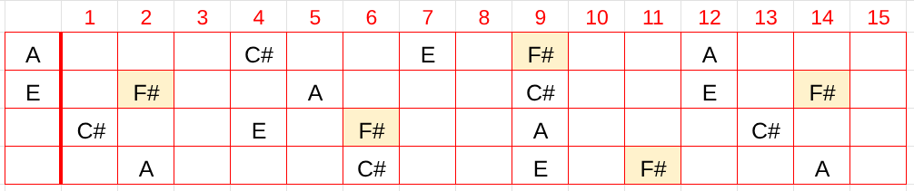 ウクレレコード構成音 F# A C# E